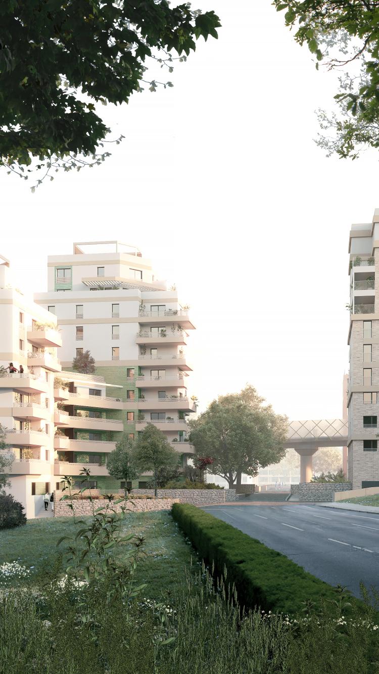 - Mobilités douces privilégiées : cheminements piétons et vélos en pied d'immeubles pour une vie plus fluide et respectueuse de l'environnement.